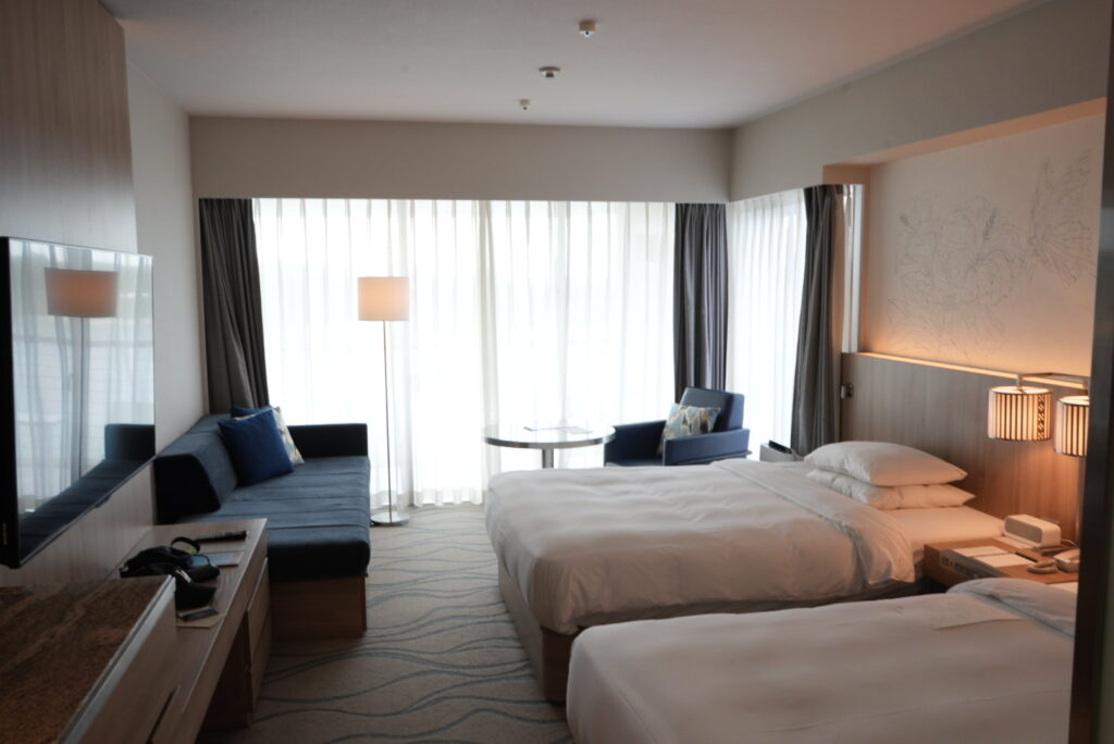 今回は「ルネッサンスリゾートオキナワ」に宿泊しました。ハイシーズンなら1泊10万円以上になることもあるこのリゾートですが、マリオットボンヴォイのポイントを活用して実質無料で泊まることができました。